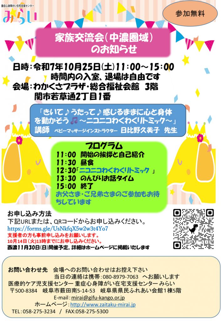 - 中濃圏域家族交流会を令和7年10月25日(土)に開催します
